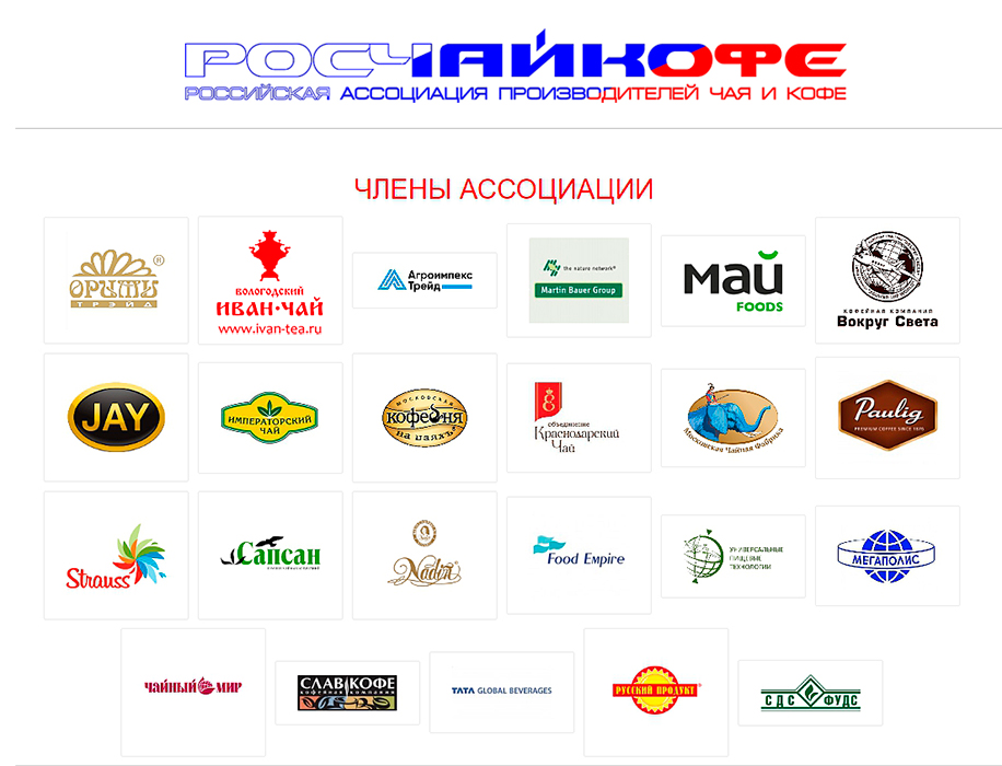 Компания «Вологодский иван-чай» – единственный производитель Иван-чая в России, который являлся членом «Российской Ассоциации Производителей Чая и Кофе «Росчайкофе». Это некоммерческая организация, объединяющая основных игроков российского рынка чая и кофе, которые контролируют около 85% рынка. В ней состоят такие крупные производители как ОРИМИ Трейд, Московская кофейня на паяхъ», Московская чайная фабрика, Майский чай, что говорит о высокой оценке качества Русского Иван-чая и о том, что он постепенно занимает забытые позиции на чайном рынке!